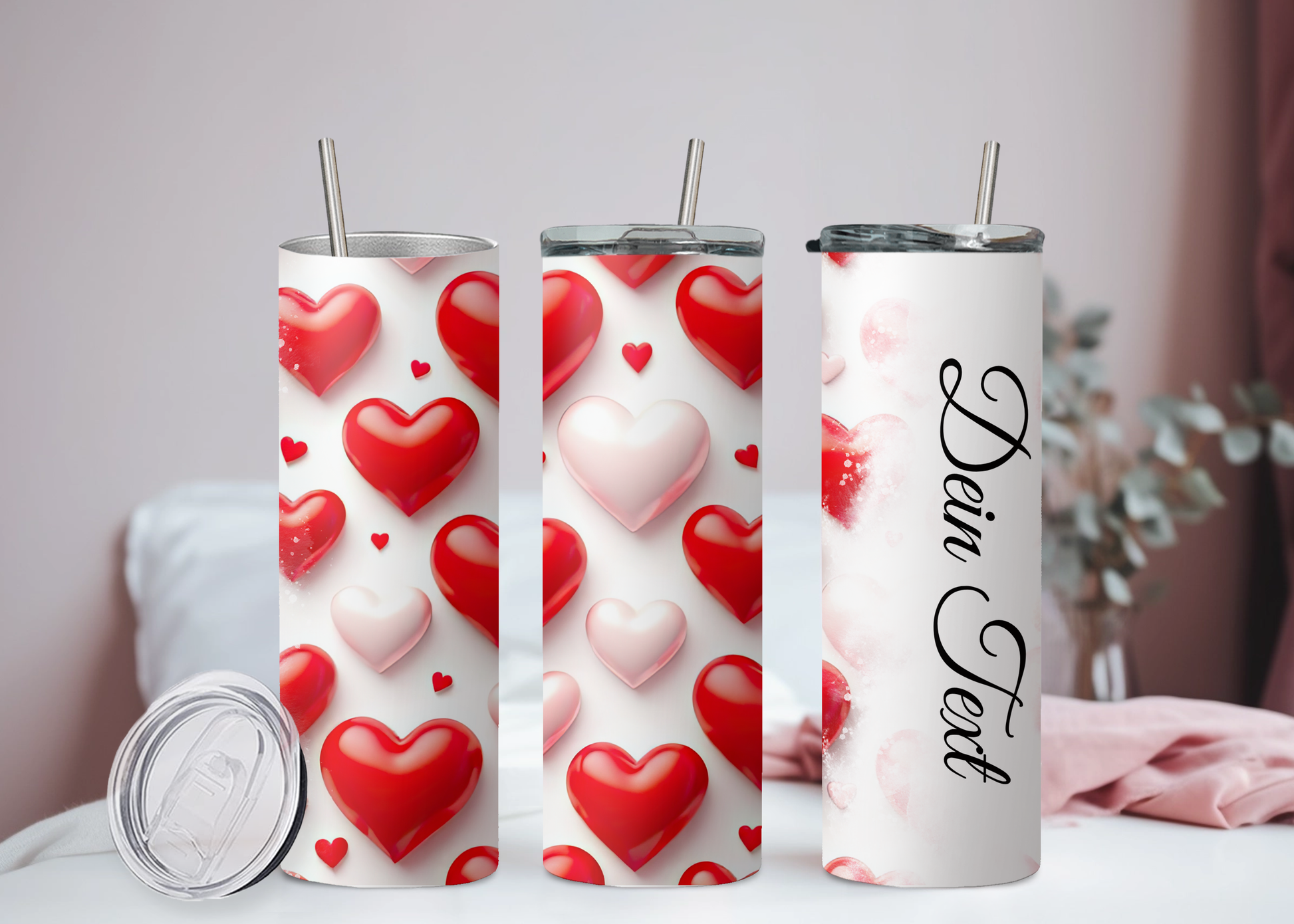 Eigener Text Becher Herzen